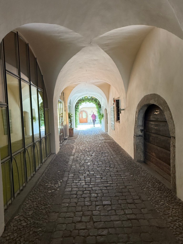 We piled aboard the bus for one of our longer days of driving but between the beautiful scenery and the frequent rest stops, it was a pretty wonderful day. We drove north of Venice to Verona and our lunch stop was in a cute little town called Egna. This region is called the South Tyrol or Sudtirol in Italian. The several young people in Egna were wearing traditional costumes which we assumed had something to do with the Folk Museum there. Definitely worth a return trip to explore more.