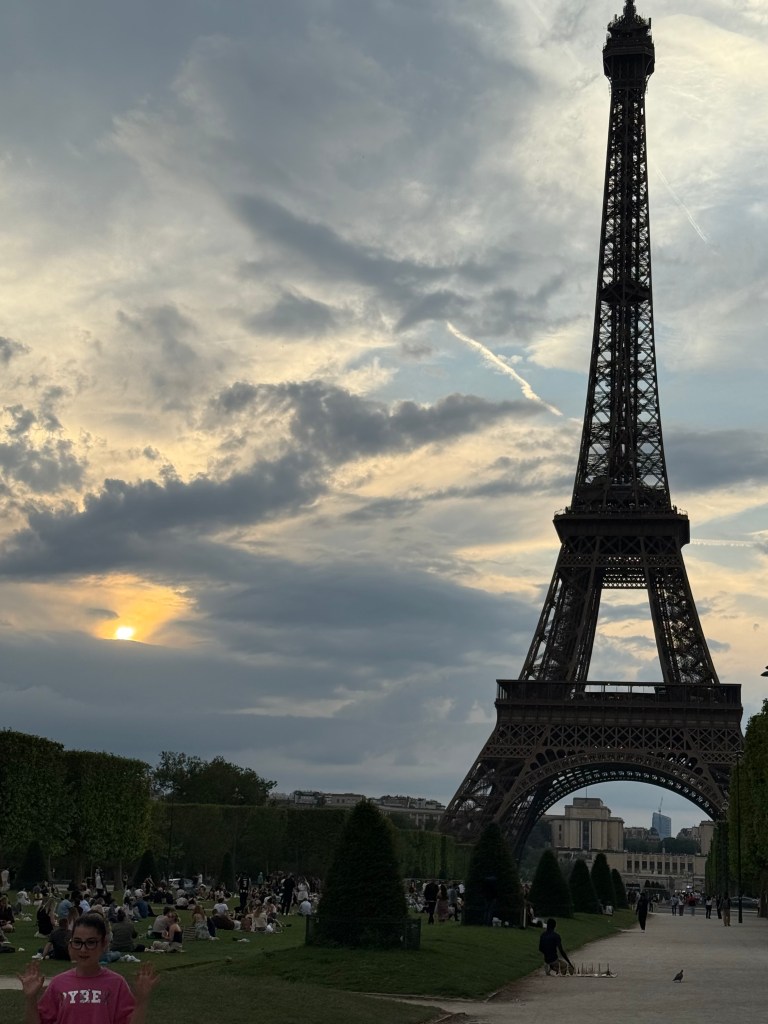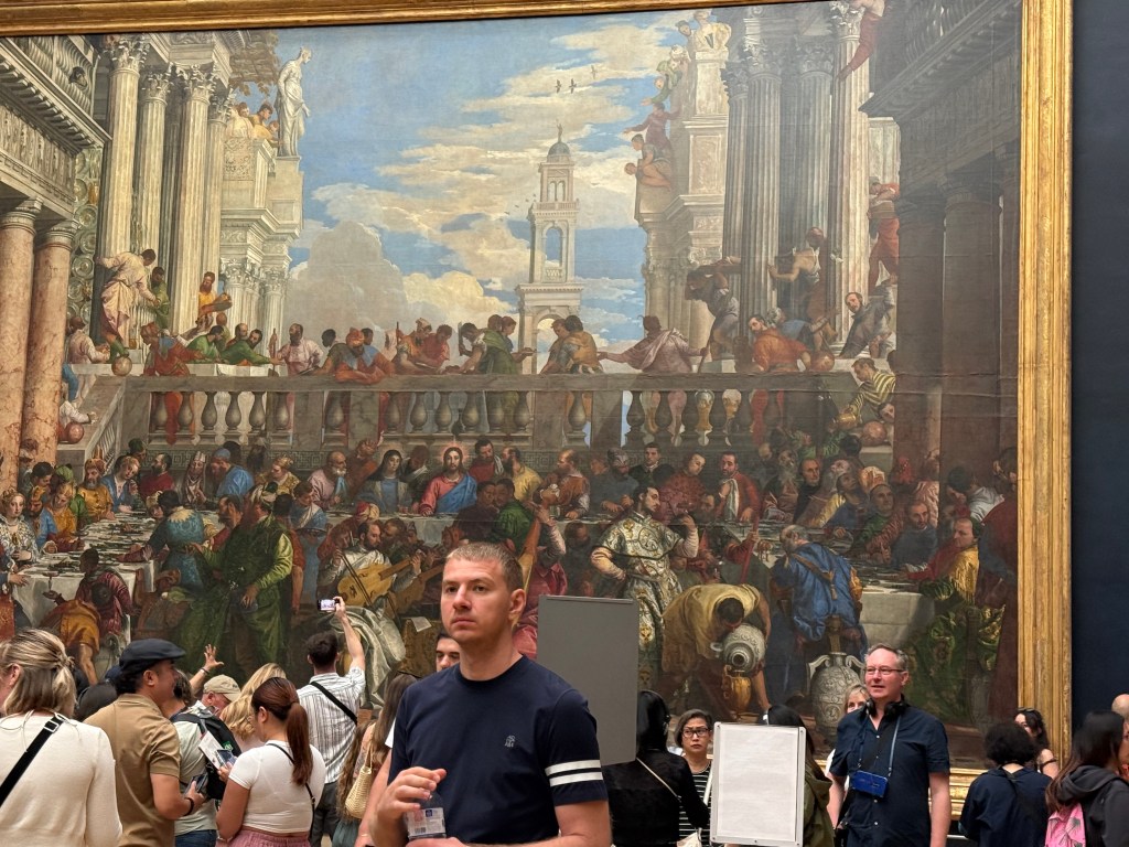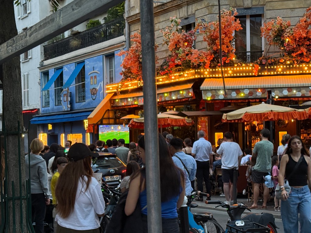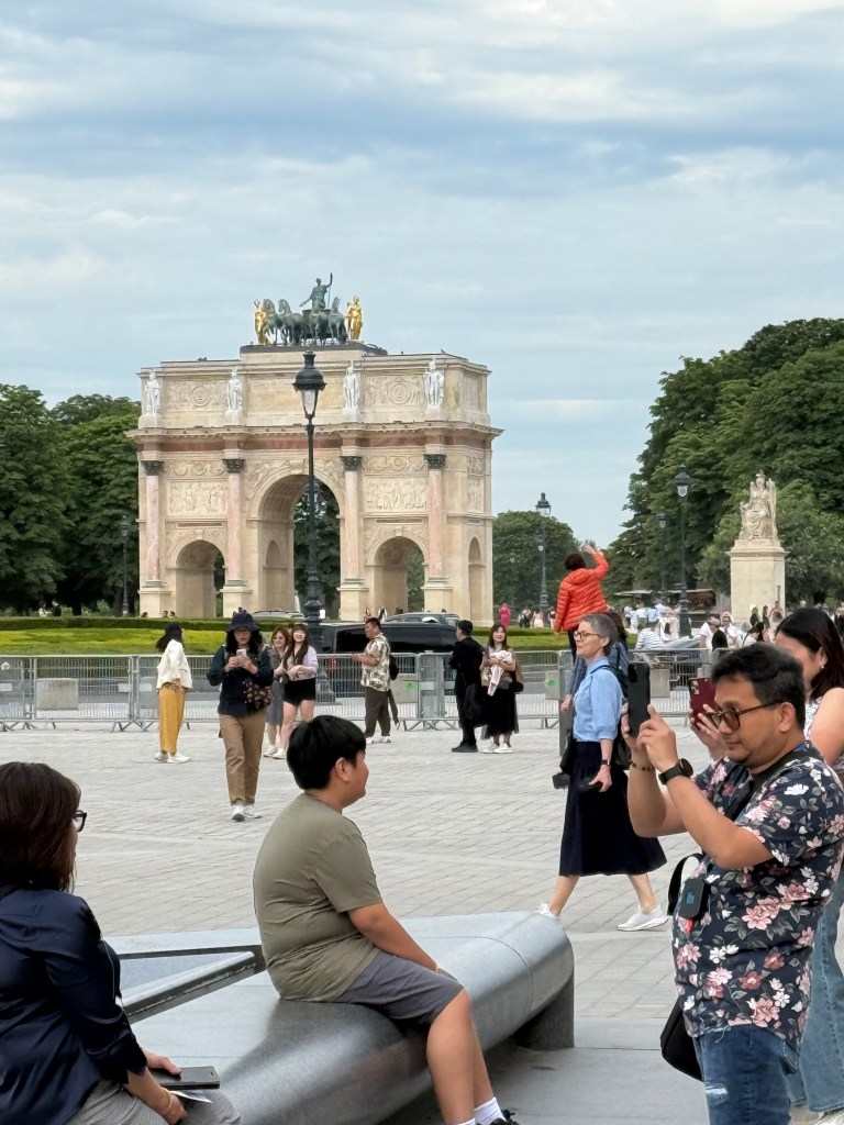 An early morning breakfast in the hotel then off to the metro station and headed to the Louvre. Since tickets were purchased ahead of time, we were able to skip the line. Because the Mona Lisa is the exhibit that is most popular, we headed there first, trying to avoid the HUGE crowd. Well, it seemed like a good plan. But we made it in and can say we saw it, along with millions of other folks. Then we wandered through other areas of the museum and marveled at the art. We were free to leave the Louvre at any time and had a free afternoon. After leaving we headed to the Arc de Triomphe. Took a few pics then started walking around in the 8th District. It seemed to be a lot quieter than the area we are staying in. Eventually, we made our way back to our hotel where we rested briefly before meeting up with the gang for our final dinner together. After dinner, Nick and I headed to the Eiffel Tower. There were lots of people out on the streets, many sporting the jersey of the Paris soccer team. Paris is playing Milan in a big game tonight. We are finding out that Parisians take their soccer very seriously. All of the local street cafes had a larger screen TV with standing room only. Every time they score we can hear the fire works. Now that the game is over there are even more fireworks. Paris 5 – Milan 0. Crazy!